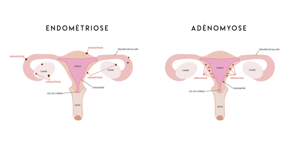 L’endométriose est une affection gynécologique chronique dans laquelle le tissu qui tapisse normalement l’utérus, appelé l’endomètre, se développe en dehors de celui-ci. Lorsque ce tissu se développe dans le muscle utérin, cela s’appelle l’adénomyose. Cette condition peut entraîner divers symptômes douloureux, affectant la qualité de vie de la personne, ainsi que des problèmes de fertilité.
